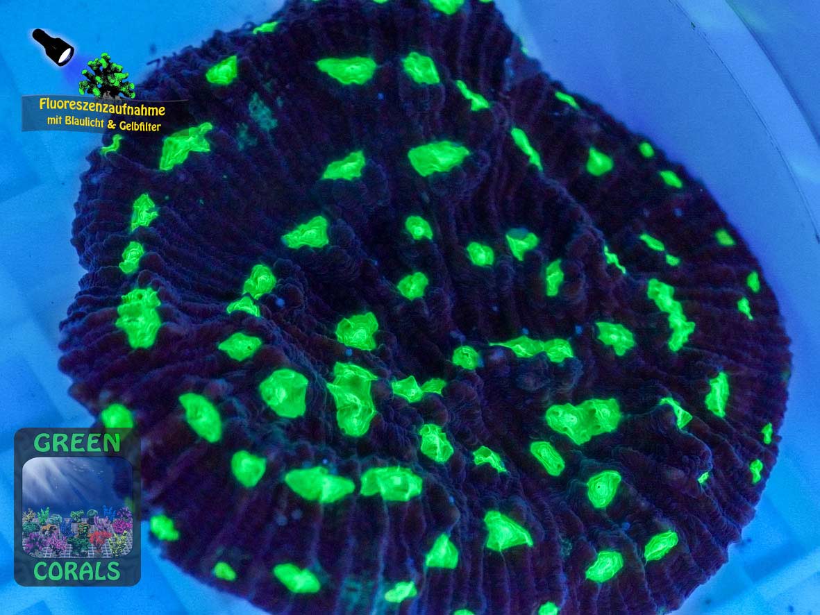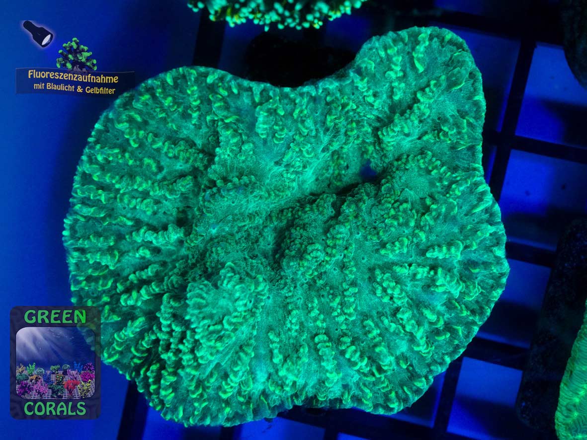 Gute Einsteigerkoralle. Sie braucht wenig Licht und nur eine schwache Strömung. Sie wächst plattenförmig und sollte wegen ihrer kämpfenden Tentakel einen sicheren Abstand zu anderen Korallen haben.