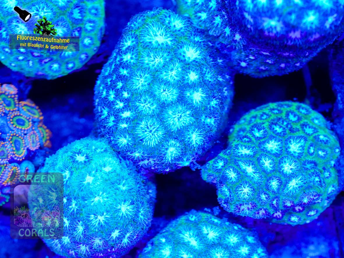 Ihre Färbung reicht von neongrün bis graubraun. Die Wuchsform ist „phaceloid“, d.h. kelchförmig, wobei der Durchmesser der einzelnen Koralliten je nach Art zwischen 8 mm und 25 mm beträgt. Die Polypen sind tagsüber geschlossen und öffnen sich ab der Dämmerungsphase, um mit ihren transparenten Tentakeln Plankton zu fangen. So kann man sie gut zusätzlich mit Frostfutter bis Mysisgröße füttern, was sie mit regem Wachstum dankt.
