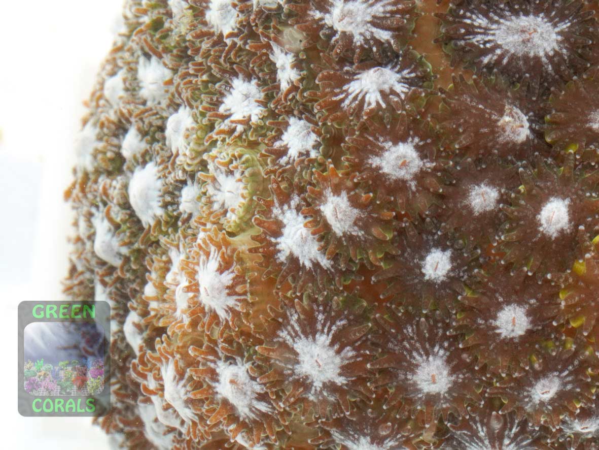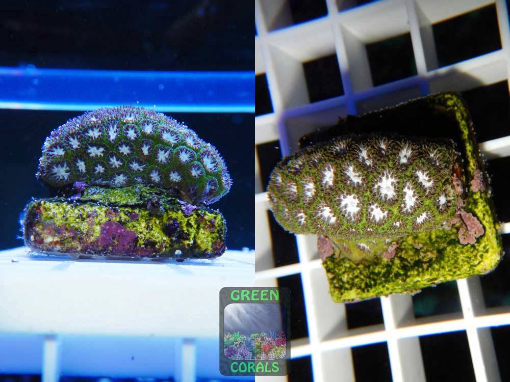 Diese Steinkoralle bildet kräftige, massive krustenartige Kolonien. Sie haben eine recht breite Toleranzbreite von wenig bis viel Licht und leichter bis starker Strömung.