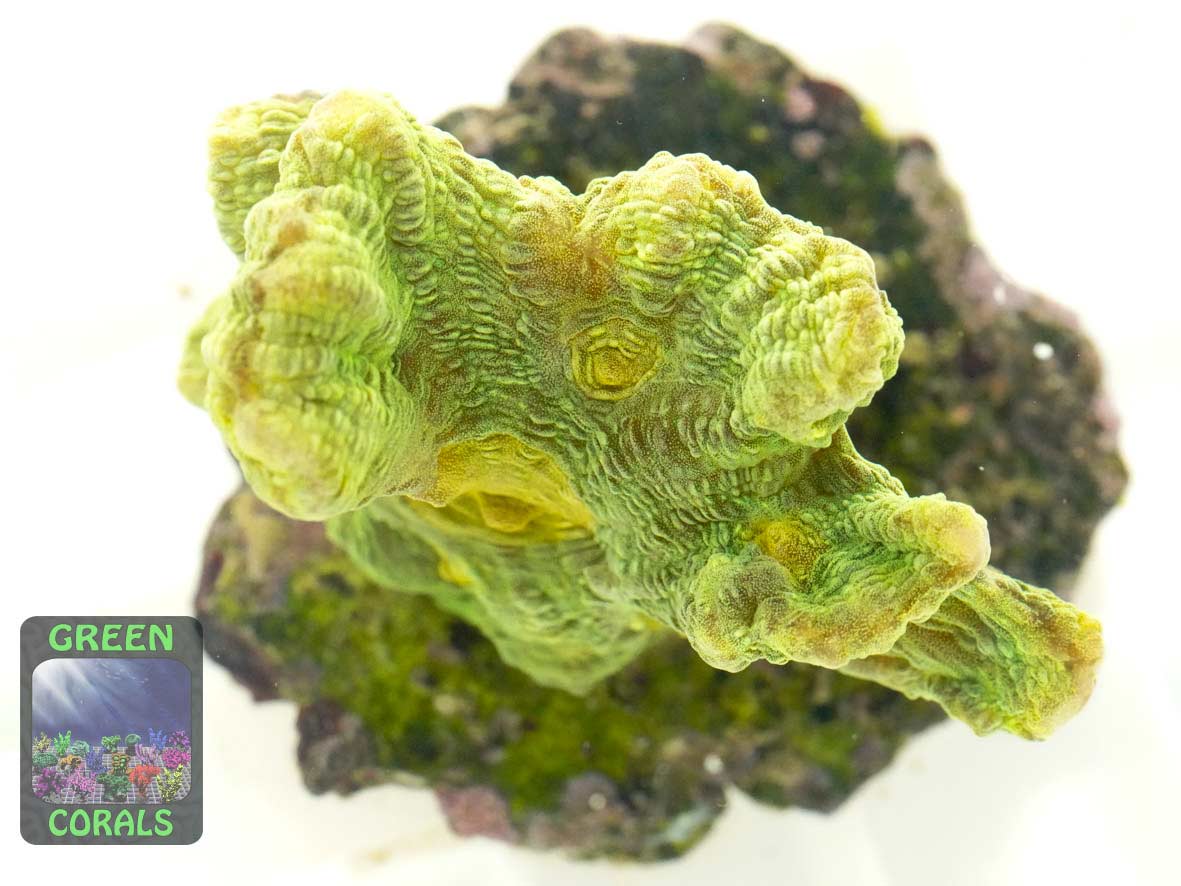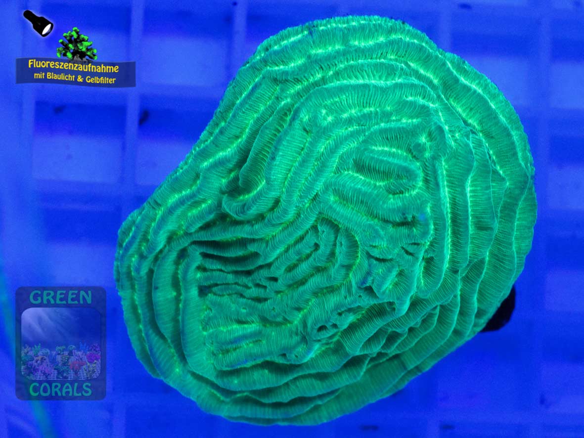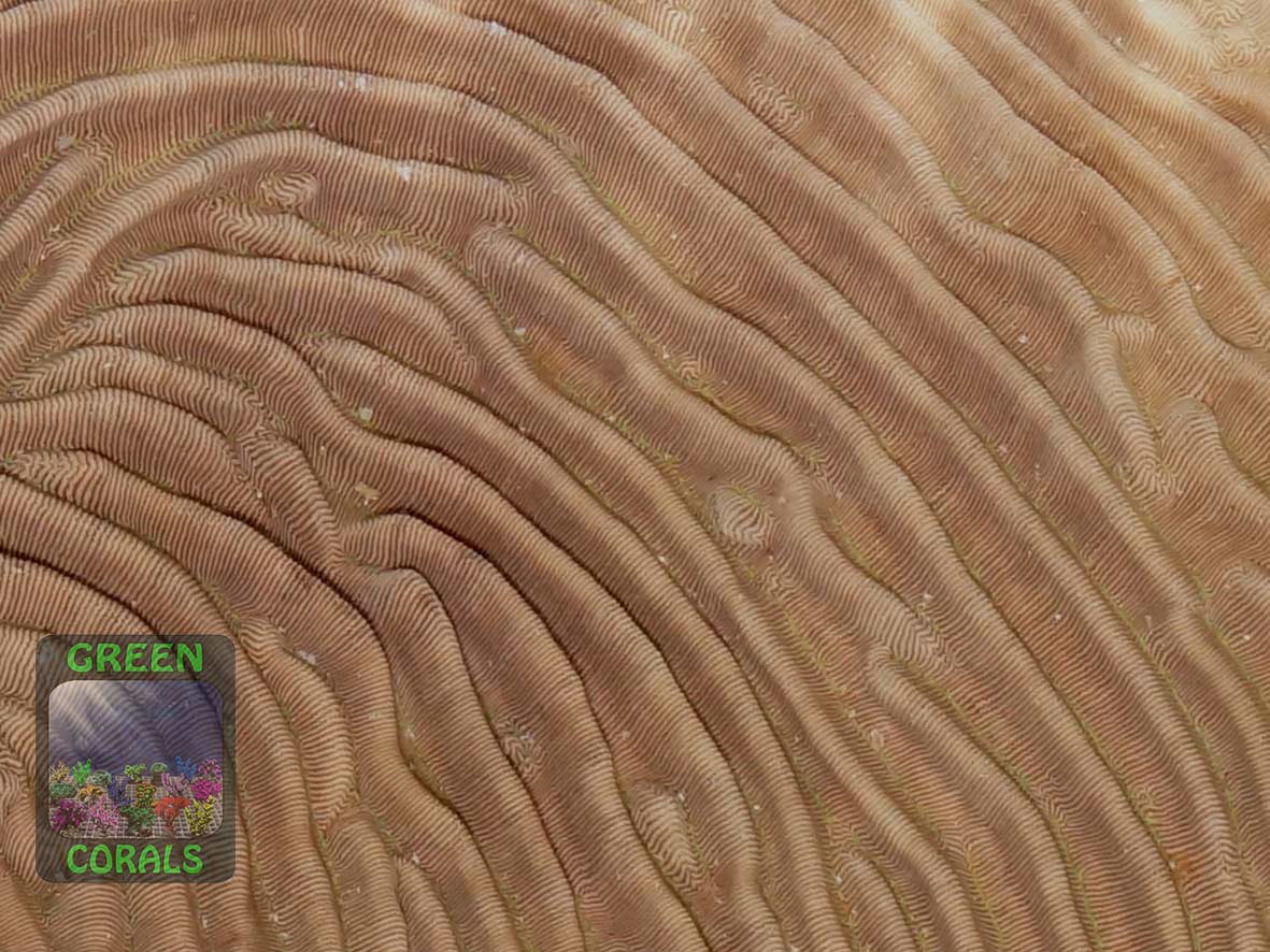 Eine gut haltbare, folios wachsende Hirnkoralle mit mäandrierenden Wänden und Polypentälern.