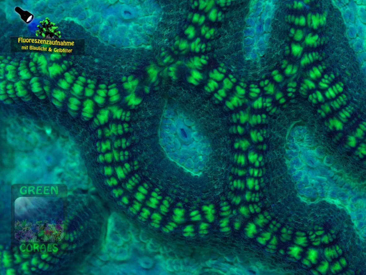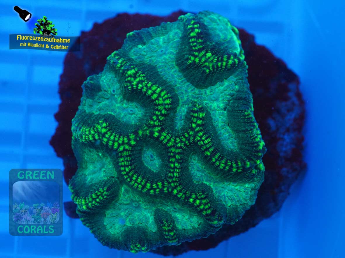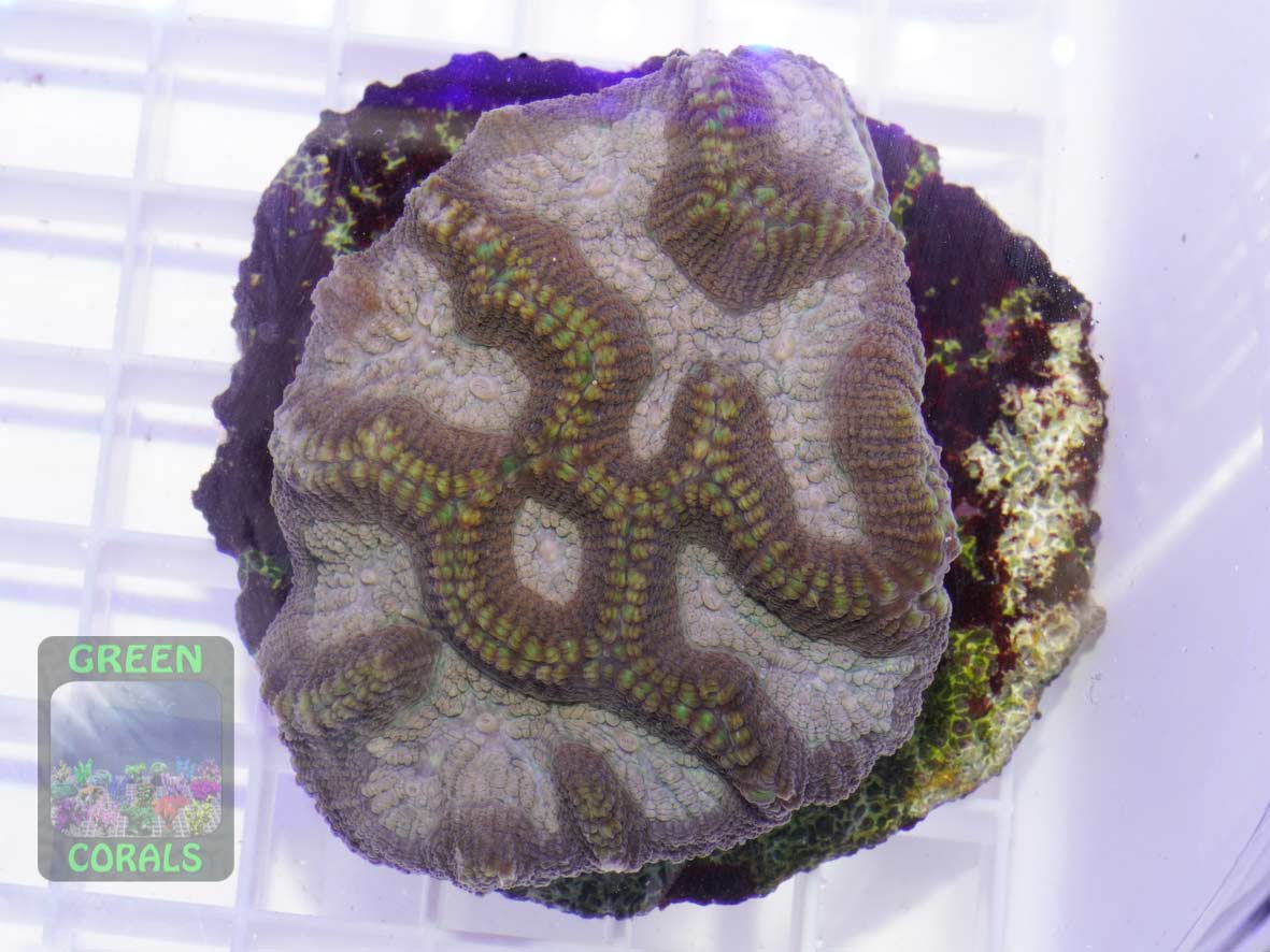 Eine gut haltbare, folios wachsende Hirnkoralle mit mäandrierenden Wänden und Polypentälern.