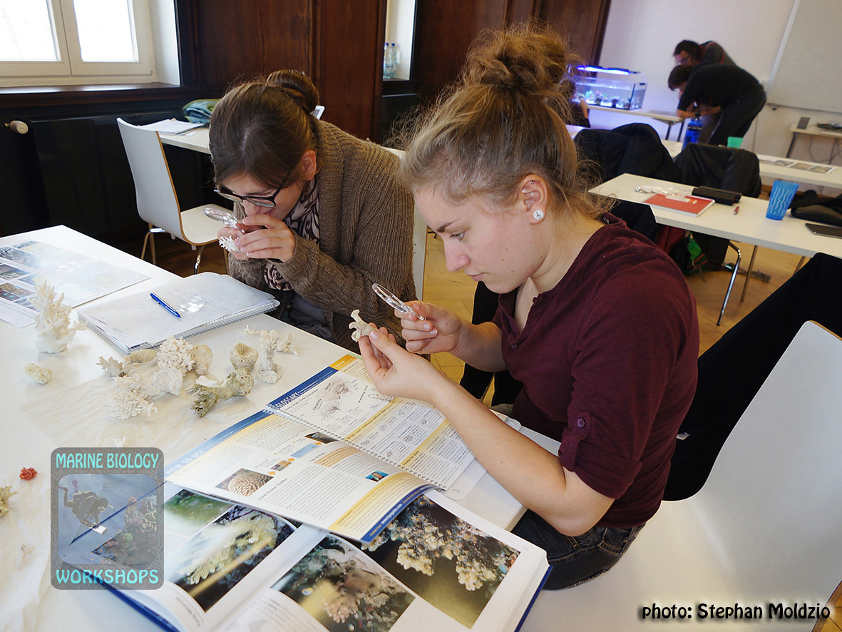 After an exciting coral presentation, the CORAL WORKSHOP will focus on the ecology of coral reefs, reef formation and erosion, zonation and the different types of reefs. The Indopacific Coral Finder is the tool for systematic coral identification and by the end of the workshop participants will be able to identify any stony coral to genus level.