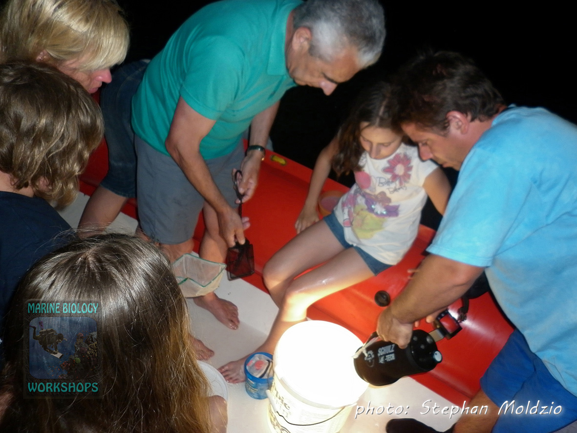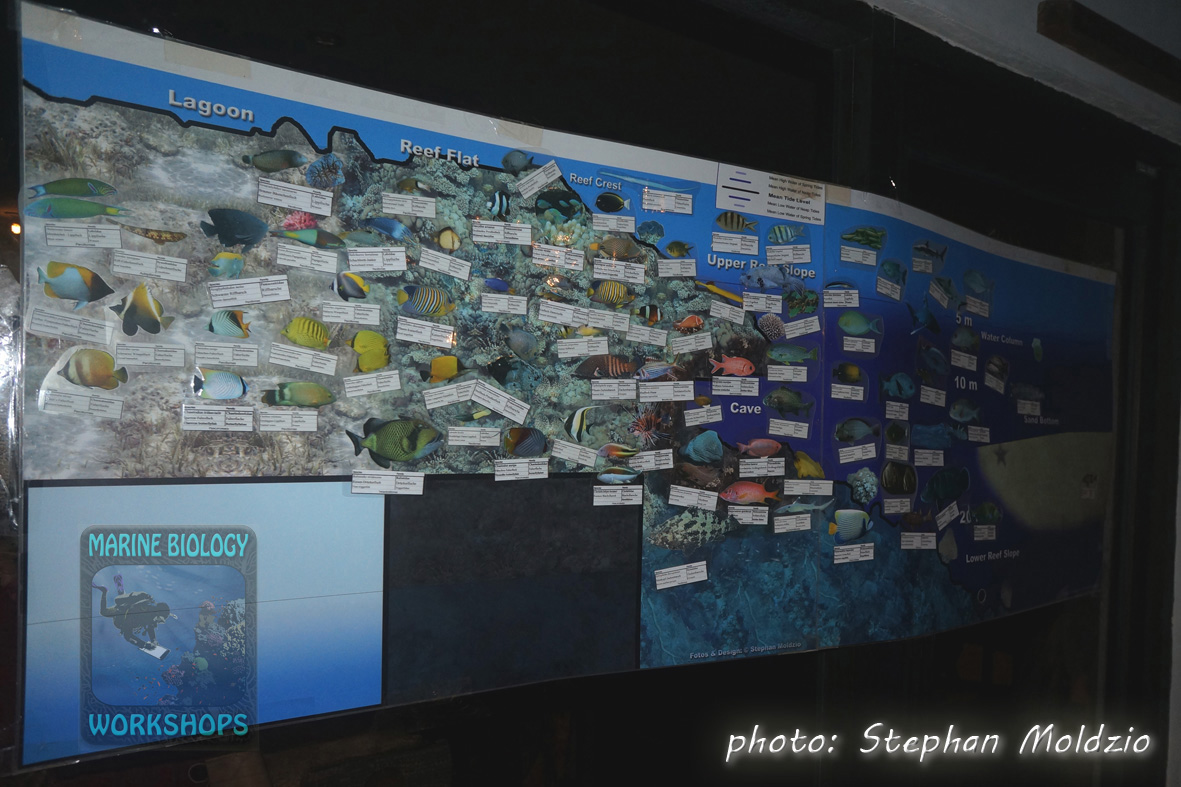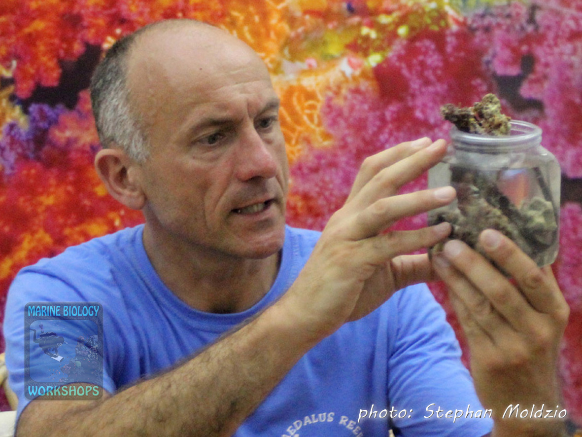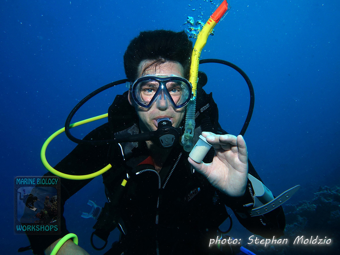 The CORAL REEF WORKSHOP at the beginning of the second week will also focus on the ecology of coral reefs: Food webs, predator-prey relationships, parasitism and symbioses, functional groups such as algae eaters, current threats to coral reefs and conservation.