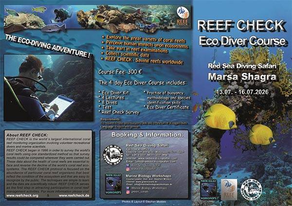 Red Sea Diving Safari will once again host the REEF CHECK Ecodiver Course and Surveys for the 18th time, this time at Marsa Shagra.