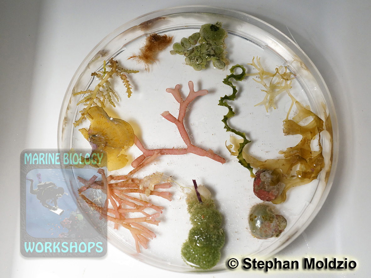 Das Korallengeröll war dichtbewachsen mit verschiedensten Mikroalgen und festsitzenden Wirbellosen Tieren.