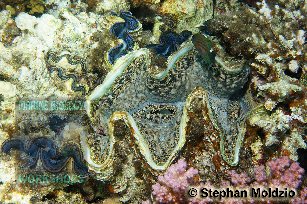 Wir beobachteten Symbiose-Partnerschaften und auch Parasiten, Fressfeinde der Korallen, Korallenkrankheiten und Bruchschäden an Korallen. Wir fanden verschiedenste Wirbellose und auch sehr seltene Arten, wie die erst vor wenigen Jahren beschriebende Riffmuschel Tridacna costata (Anm. März 2018: Inzwischen wurde die Art umbenannt in T. squamosina).