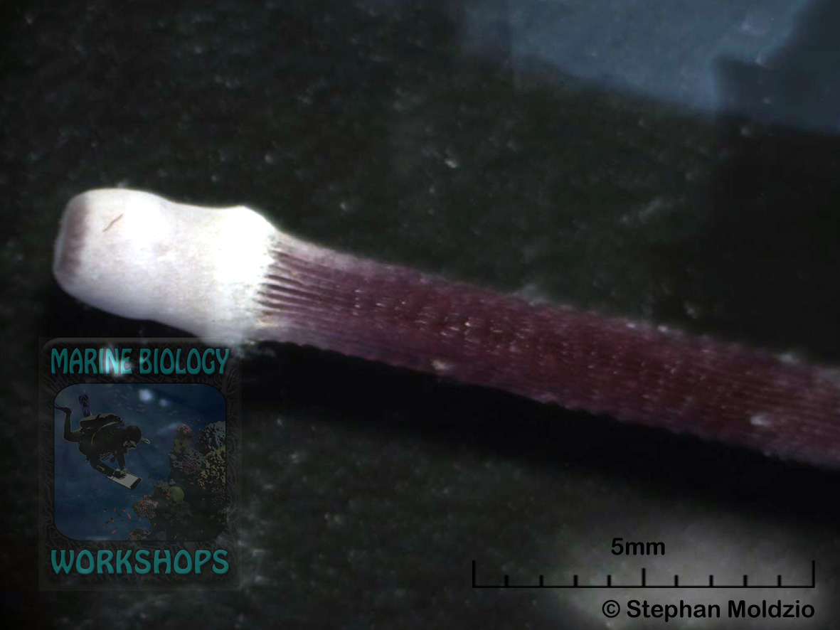 Hier fanden wir zwischen den Sandkörnern mikroskopisch kleine, aber sich ziemlich schnell bewegende Ciliaten (Strahlentierchen) and Nematoden (Fadenwürmer), Skelettnadeln von Weichkorallen, Schwämmen, und Fragmente der Kalkskelette von Korallen, Schnecken, sowie Seeigelstacheln.