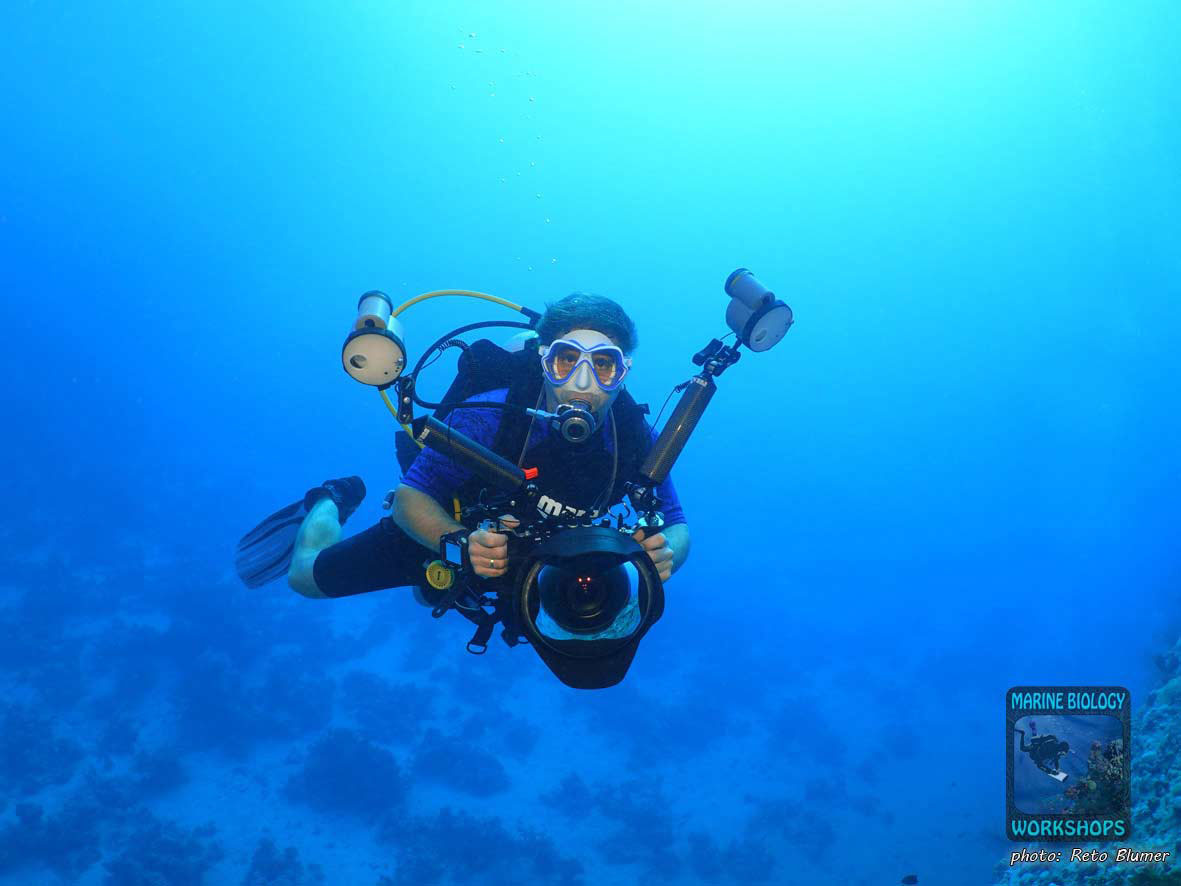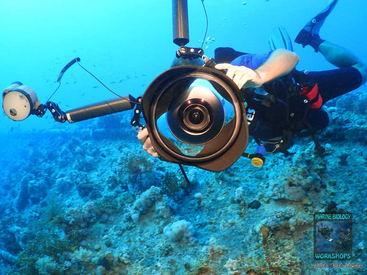 Mit diversen Objektiven von Makro bis Fisheye, Ports, Blitzen und Lampen war er gut ausgerüstet für die professionelle Dokumentation der Unterwasserwelt.